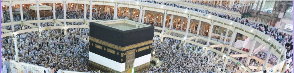بدء الطواف: تبدأ الطواف حول الكعبة سبعة أشواط، بحيث تكون الكعبة على يسارك وتبدأ من الحجر الأسود وتنتهي به.